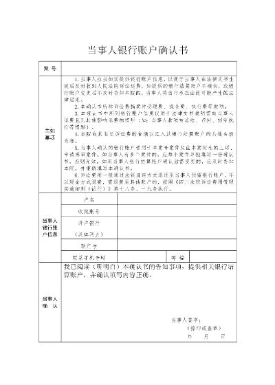 当事人银行结算账户确认书
