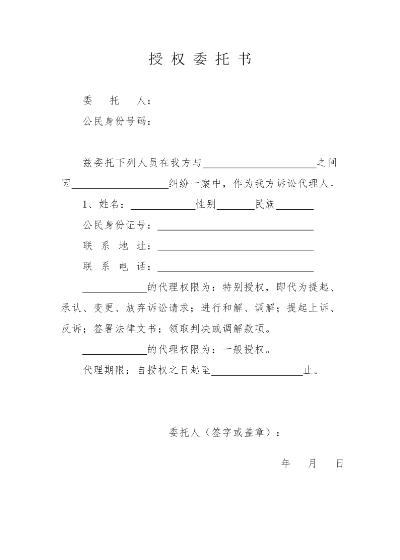 自然人授权委托书
